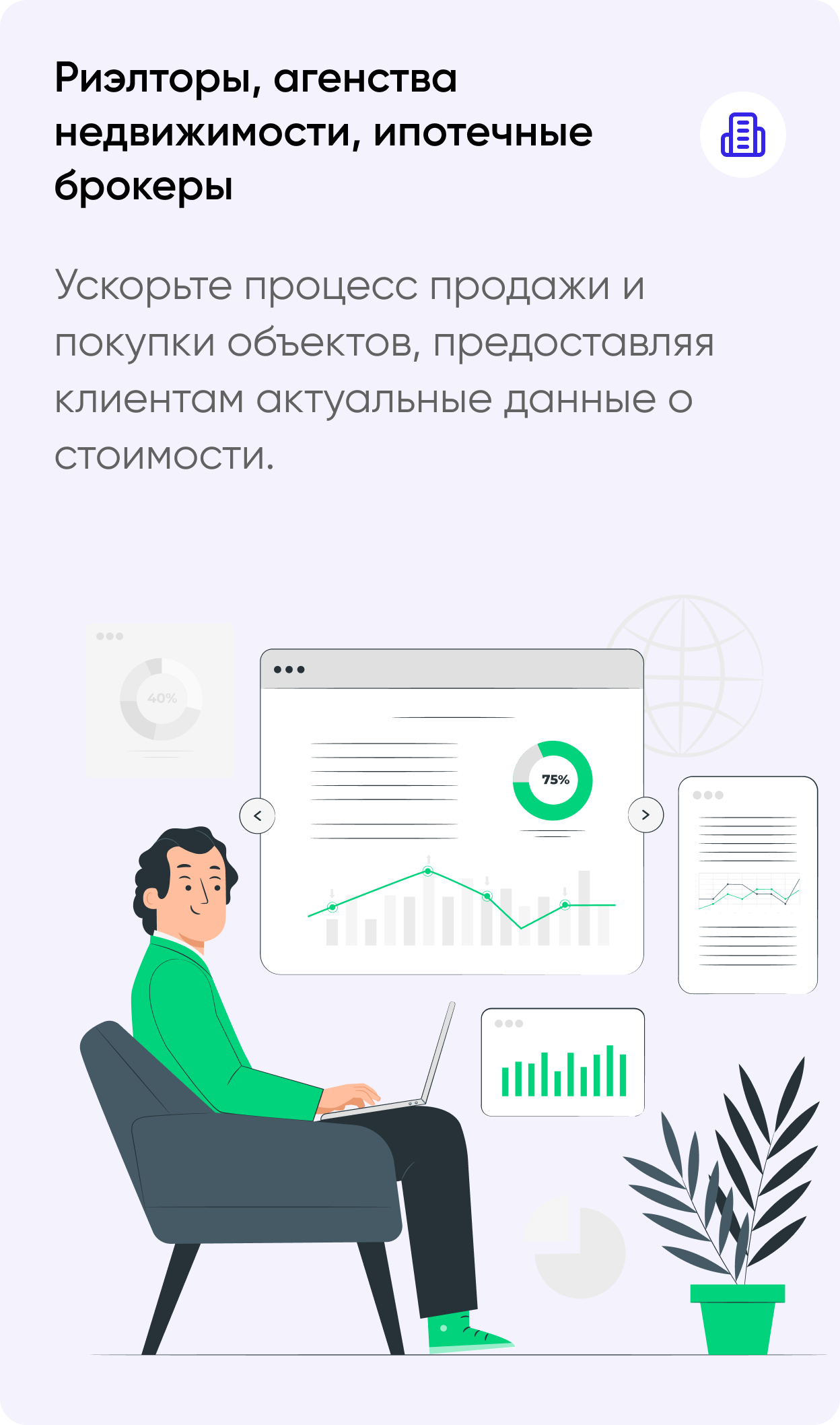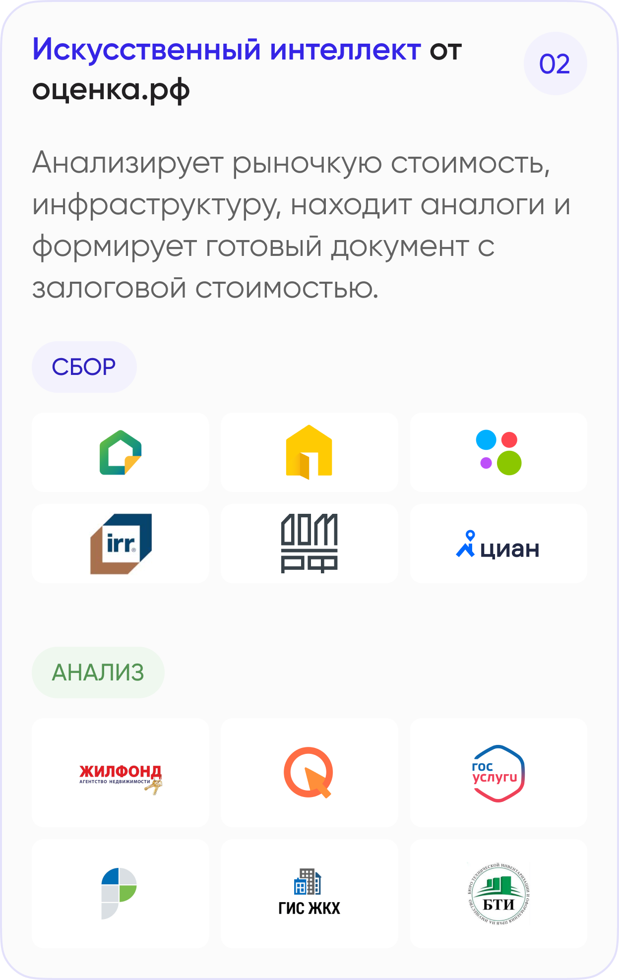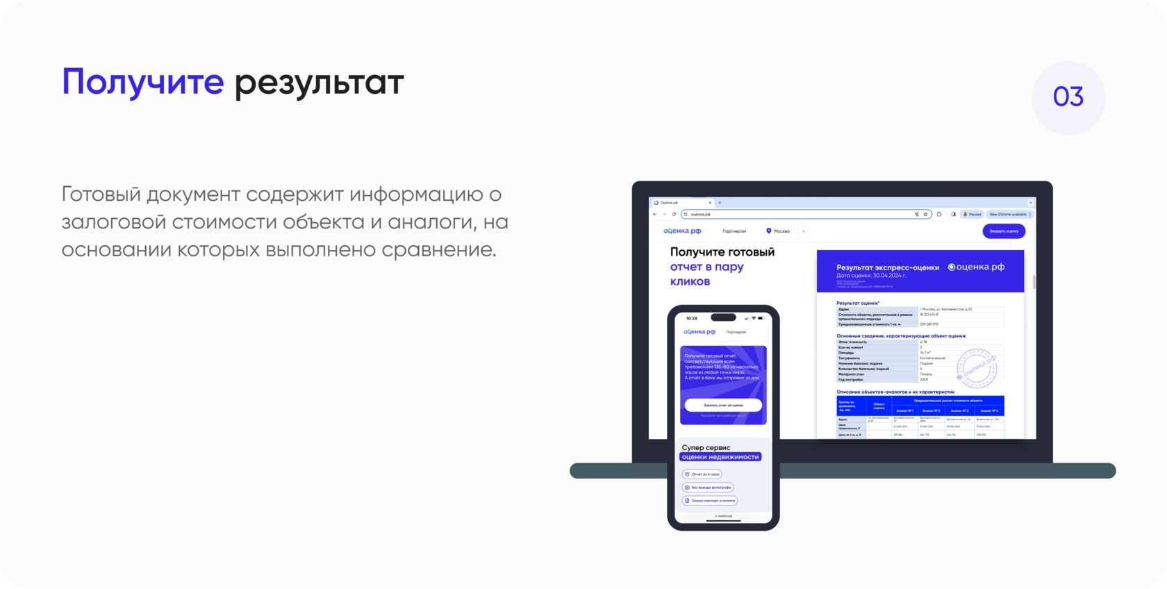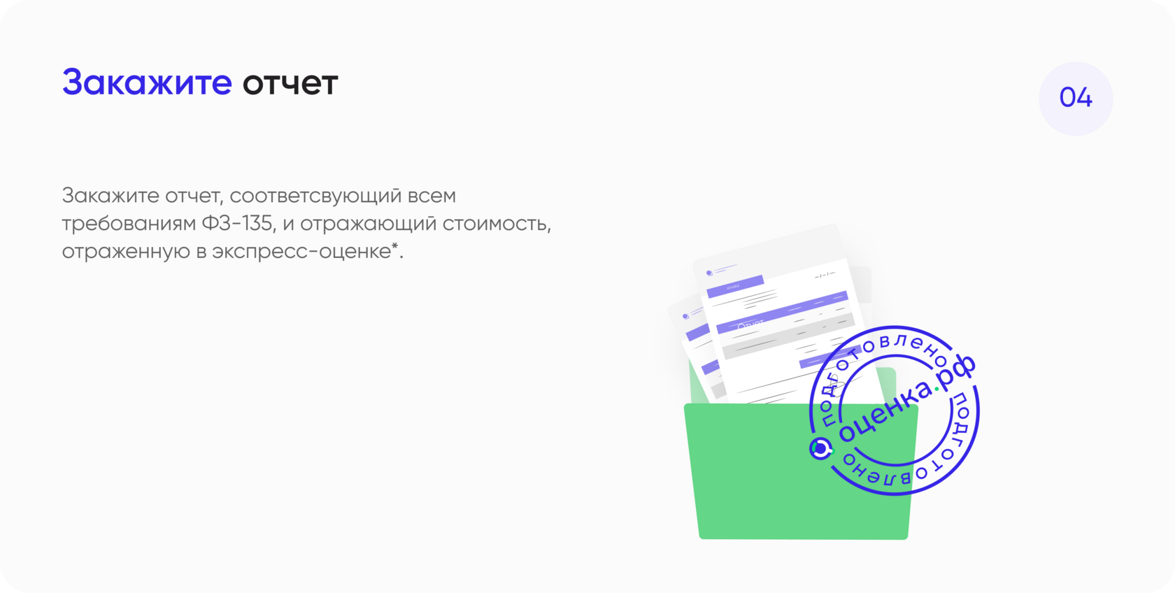 На нашем сайте вы можете заказать экспресс-расчет для квартиры. Если вам нужно оценить другие объекты, такие как кладовые, комнаты, дома и участки (ИЖС), машиноместа и прочее, вы можете сделать это через сайт оценка.рф, по телефону +7 800 500 90 78 или по электронной почте: service@ocenka.tech.